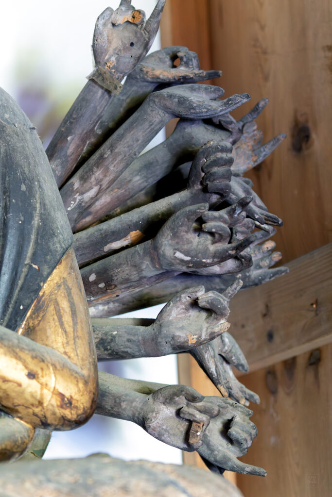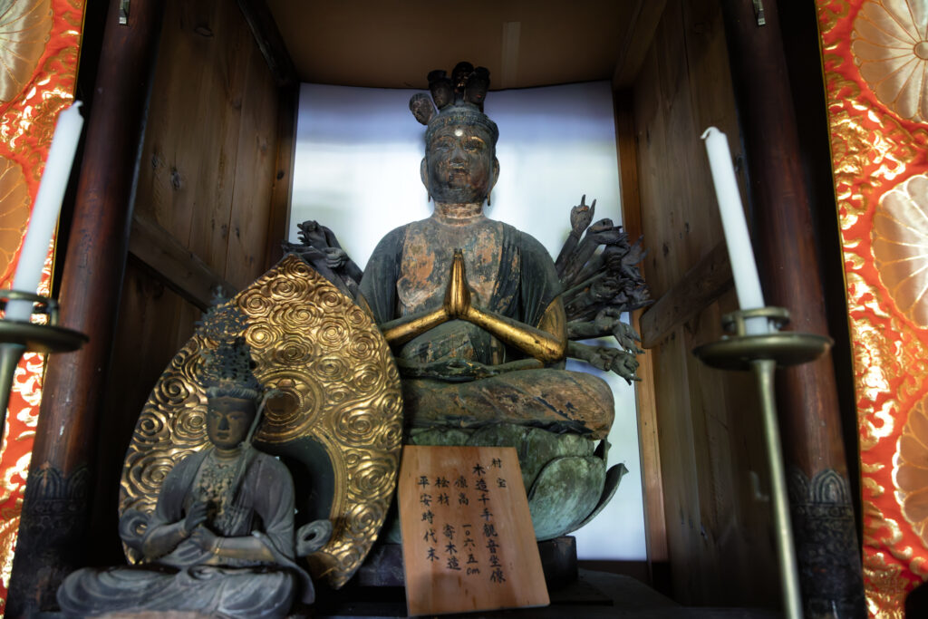 珍しい坐像の千手観音像である。
