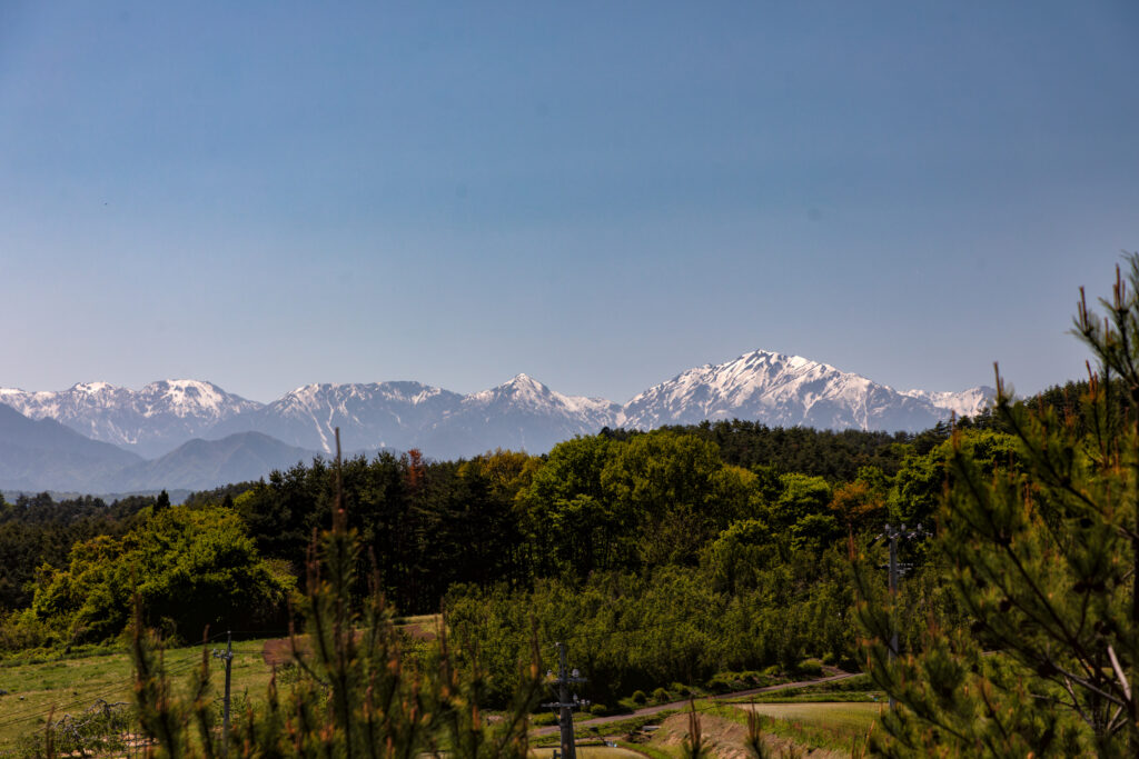 お寺を後にして、教えていただいた福満寺近くの北アルプスを一望できる場所へ行ってみた。本当にいい天気に恵まれた。