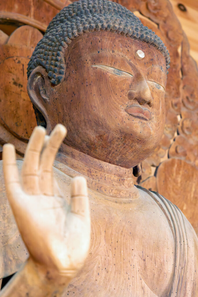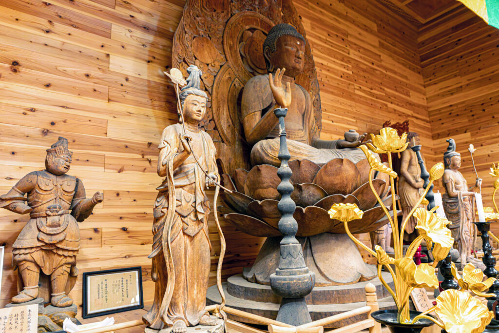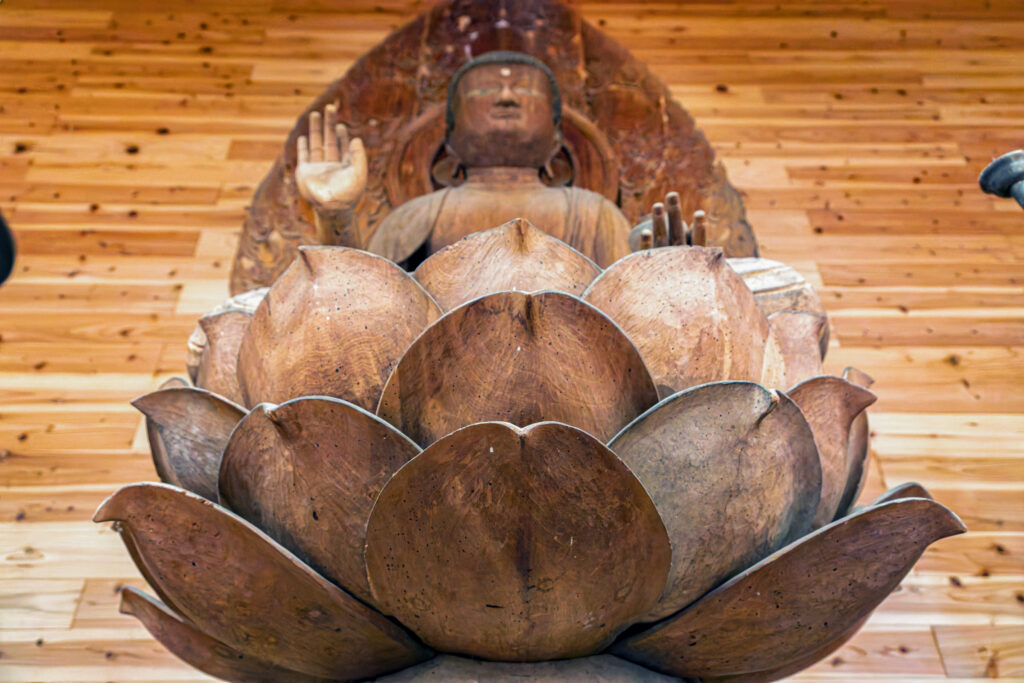 中に入ると、思わず声が漏れてしまうほど、素晴らしい空間が広がっていた。木材に包まれたような温かみを感じる室内であるが、同様に、「木」そのものといった雰囲気の仏像たちがたくさん並んでいる。