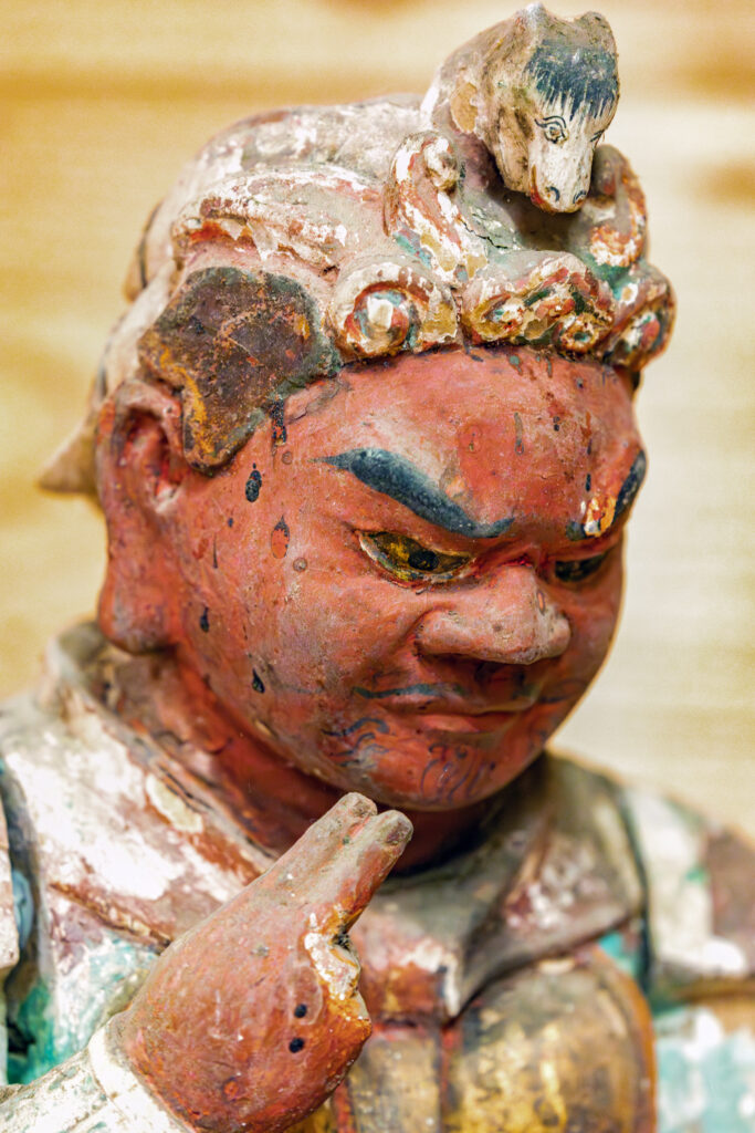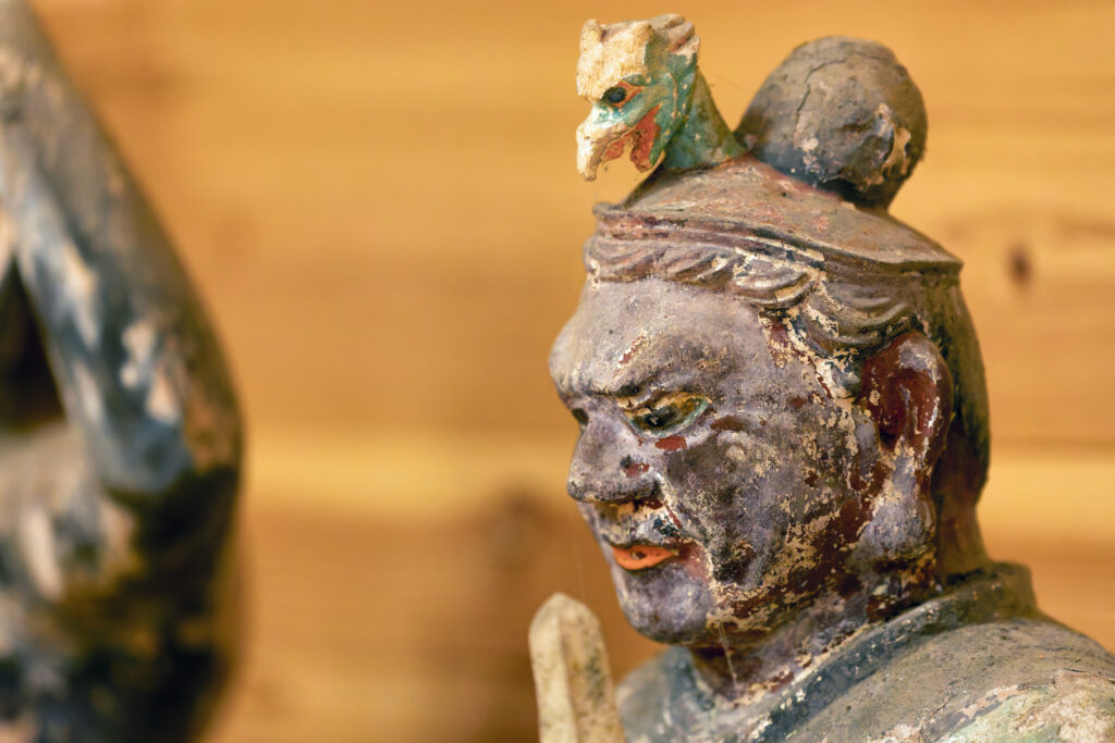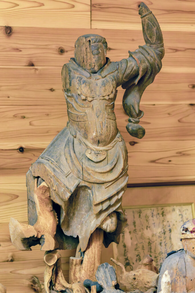 天部立像(四天王)のひとつとして考えられているようだが、こんな状態の像もある。