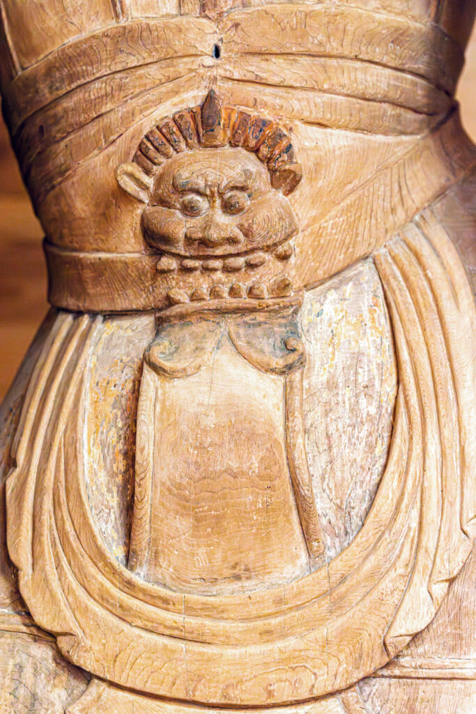 2体とも、もともとは後世の彩色が塗られていたようだが、修理の際に剥がして素地に近い状態となった。修復から戻られたばかりのようだ。